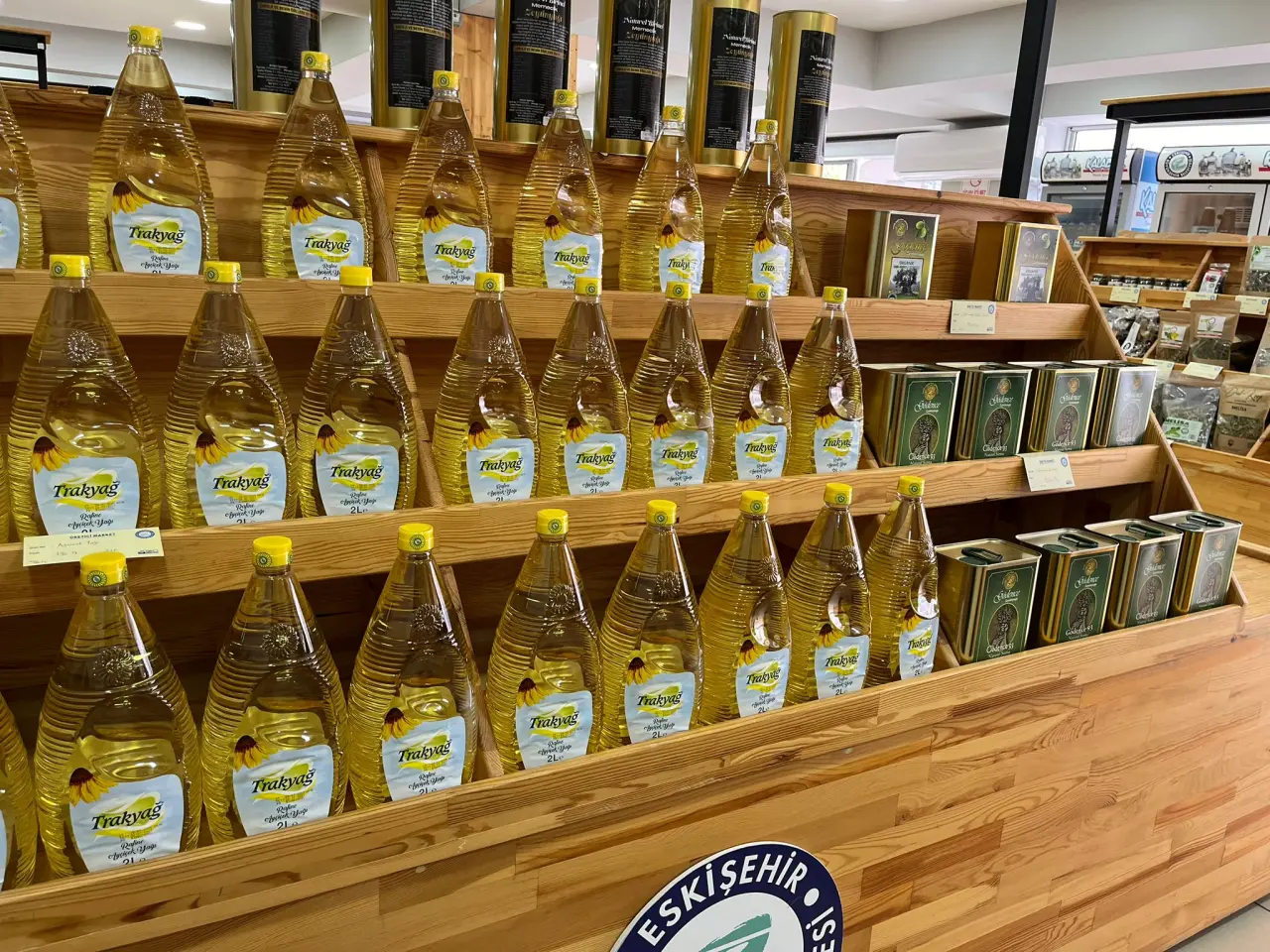 Üretici Market’te 1 kilogram siyah yağlı sele zeytin 225 TL, 900 gram yeşil zeytin 205 TL’den satışa sunulurken, 2 litrelik zeytinyağı 960 TL, 5 litrelik zeytinyağı ise 2 bin 250 TL’ye alıcı buluyor. Ayçiçek yağında ise 2 litre 190 TL, 5 litre 450 TL olarak raflarda yerini alıyor. Eskişehir’de üretilen Dorlion markalı 250 mililitrelik zeytinyağının fiyatı 500 TL’ye kadar çıkıyor.