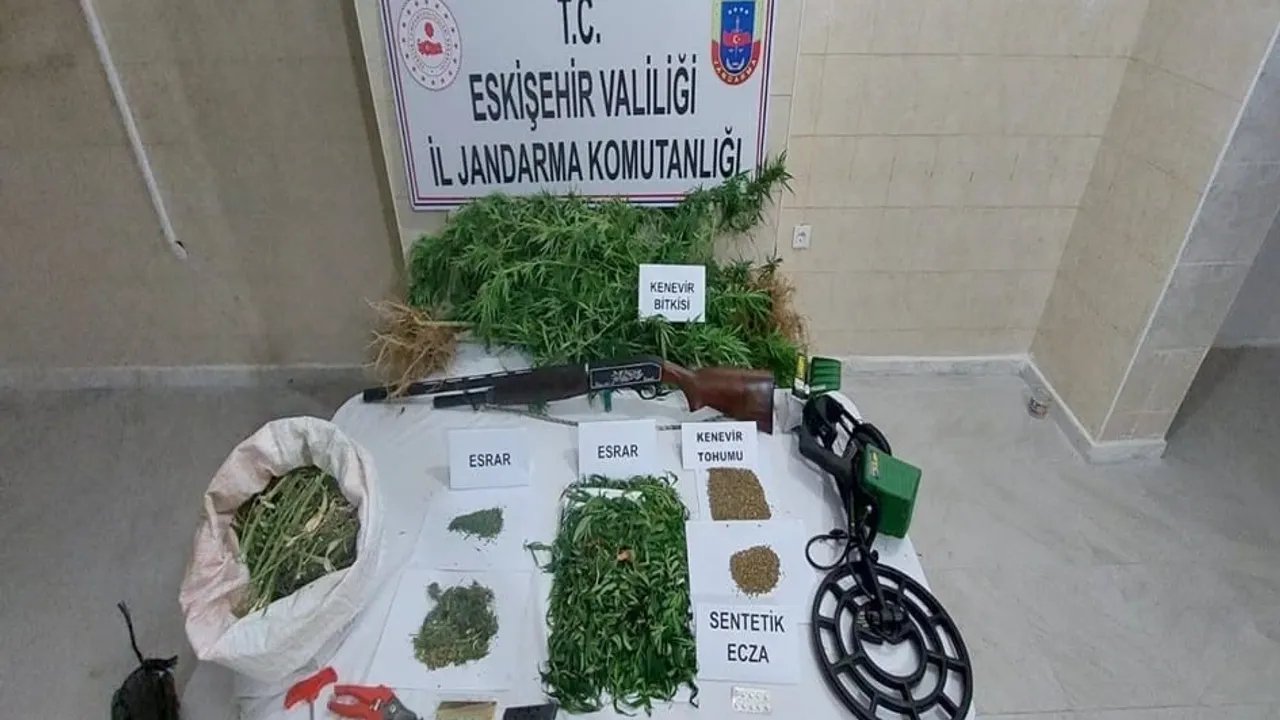Edinilen bilgilere göre, İl Jandarma Komutanlığı'na bağlı ekipler tarafından Sivrihisar İlçesi'nde bir şahsın evinde kenevir bitkisi yetiştirdiği, imal ettiği uyuşturucu maddeleri ise satmak için müşteri aradığı öğrenildi. Ekipler tarafından şahsın evine düzenlenen operasyonda, 966 gram esrar, 53 kök kenevir, 504 gram kenevir tohumu, 9 adet sentetik ecza hap, 1 adet ruhsatsız av tüfeği, 1 adet dedektör ve 2 adet sahte polis kimliği ele geçirildi.