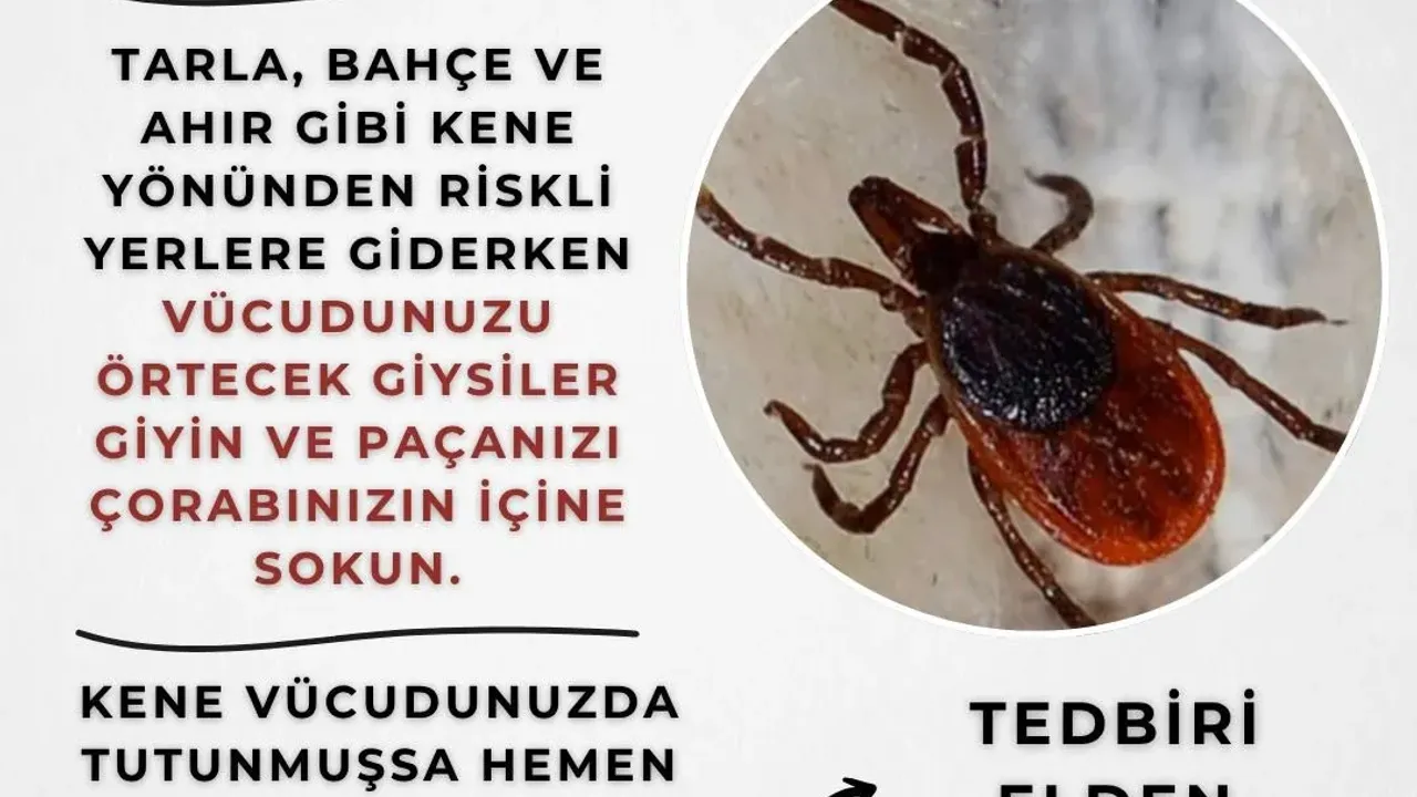 Valiliğin sosyal medya hesabından yapılan paylaşımda, "Keneyi hafife almayın! Tarla, bahçe ve ahır gibi kene yönünden riskli yerlere giderken vücudunuzu öretecek giysiler giyin ve paçanızı çorabınızın içine sokun. Kene vücudunuza tutunmuşsa hemen en yakın sağlık kuruluşuna gidin. Tedbiri elden bırakmayın" ifadeleri yer aldı.