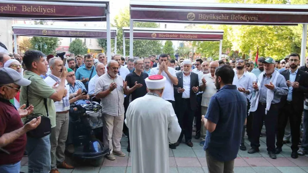 Eskişehir'de camii avlusunda toplanan bir grup vatandaş, Uzman Çavuş Seydi Ünlü, Hamas lideri İsmail Haniye ve Filistinliler için dua etti.