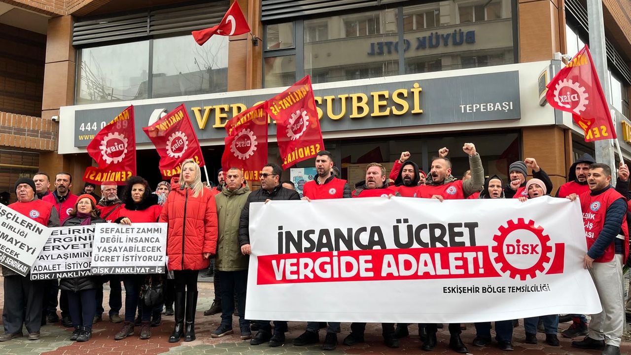 DİSK Eskişehir Bölge Temsilcisi Zeynep Kaya, işçiler, emekçiler ve emeklilerin yaşadığı ekonomik sıkıntılara dikkat çekerek gelir ve vergi adaletsizliğini eleştirdi. Kaya, yüksek enflasyon ve hayat pahalılığı nedeniyle işçilerin alım gücünün her geçen gün eridiğini belirtti. Türkiye’nin dünyadaki en adaletsiz vergi sistemlerinden birine sahip olduğunu ifade etti.