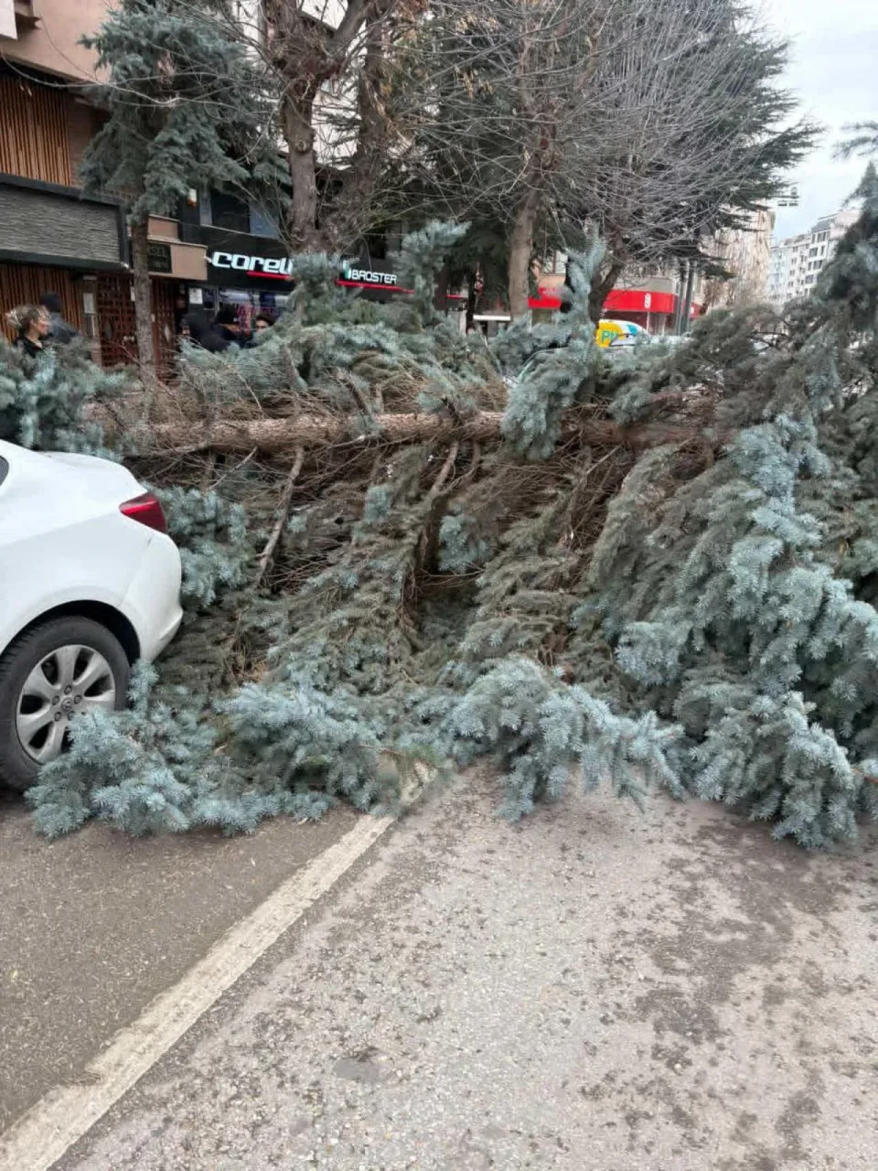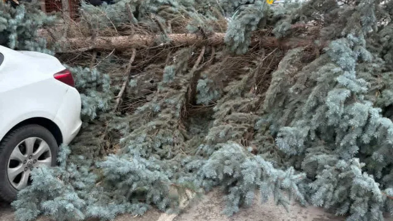 Batıkent Vadişehir Mahallesi’nde ağaçların araç üzerine devrilmesinin ardından Vişnelik Mahallesi Öğretmenler Caddesi’nde de bir ağaç kökünden devrilerek park halindeki arabının üzerine düştü.