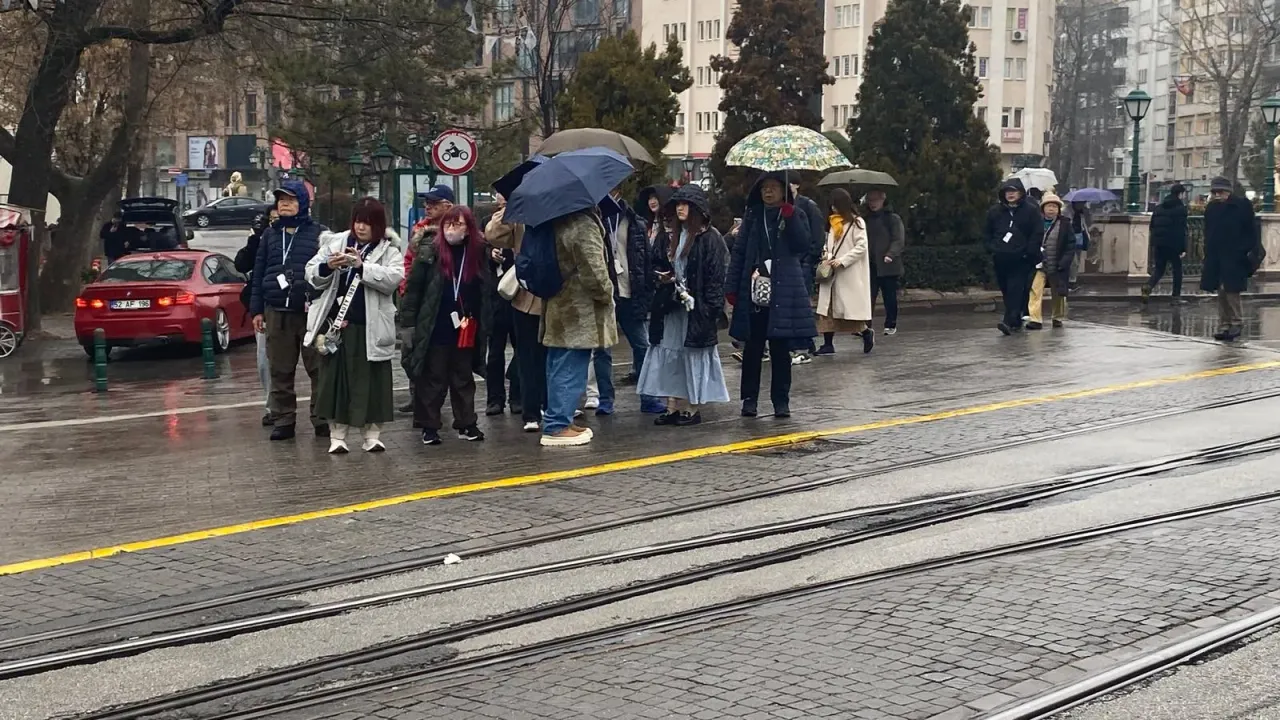 Tur rehberleri eşliğinde şehir turu yapan Çinli turistler, Eskişehir’in mimarisine ve şehir yapısına hayran kaldıklarını belirttiler. Yağmurlu havaya aldırış etmeyen grup, şemsiyeleriyle şehrin tadını çıkarmaya devam etti.