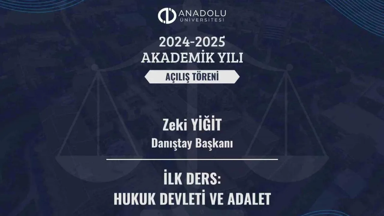 Bu yıl 66. kuruluş yıldönümünü kutlayacak olan Anadolu Üniversitesinin, 2024-2025 Akademik Yılı açılış dersini, 'Hukuk Devleti ve Adalet' başlığı ile Danıştay Başkanı Zeki Yiğit verecek.