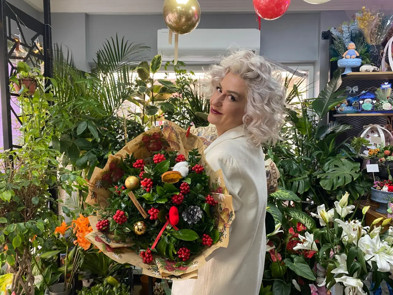 Kokina çiçeğinin bakımına ilişkin bilgi vererek, “Aslında kokinanın klasik anlamda bir bakımı yok. Yeşil dallar ve kırmızı meyveler farklı bitkilerden oluşuyor ve el emeğiyle birleştiriliyor. Serin ortamda tutulur ve altına az miktarda su verilirse daha uzun süre taze kalabiliyor” şeklinde konuştu.