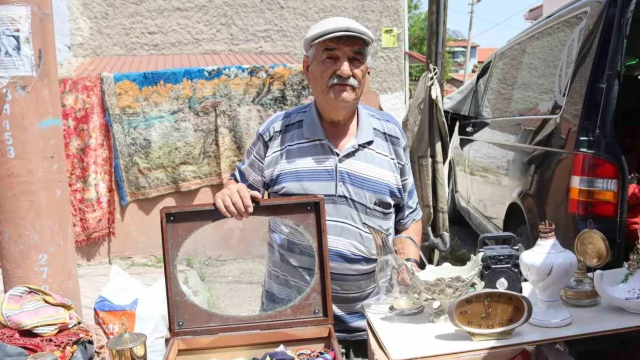 Eskişehir'de Mustafa Kılıç isimli vatandaş, yıllardır topladığı antika ürünleri çarşı pazar dolaşarak satıp geçimini sağlıyor.