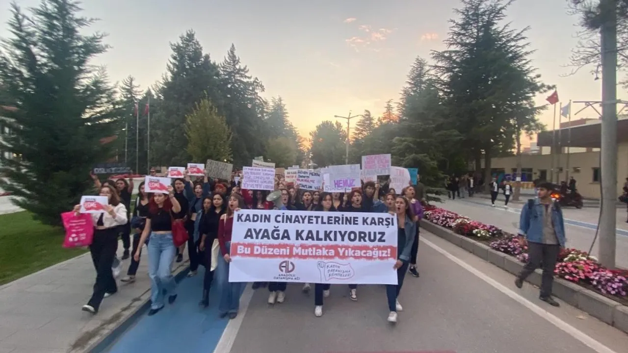 Anadolu Üniversite içinde buluşan yüzlerce öğrenci kadın cinayetlerine karşı ve toplumsal adaletsizliğe karşı seslerini yükselterek kent merkezine yürüdü.